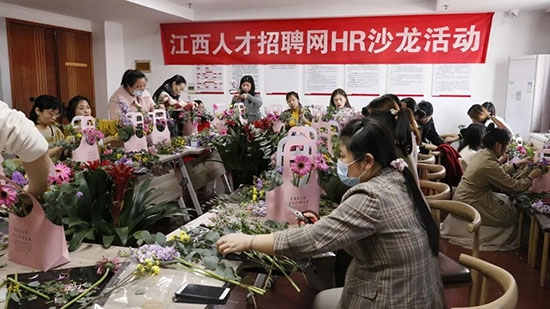 阳春三月,鸟语花香。在第112个国际妇女节到来之际,江西人才招聘网HR俱乐部在聚才人力集团活动室为会员客户举办了“花舞女神季 花艺沙龙”活动。通过学习插花来装饰自己的生活环境,给予女性静心、修心、养心的工作学习环境。